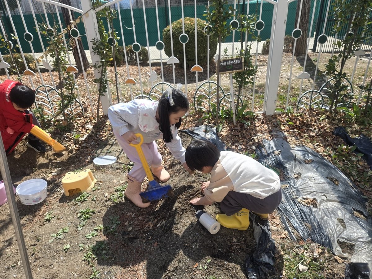유아들은 짝을 이루어 흙을 만지고 씨감자를 심으며 서로 도와주는 모습을 보였다. 삽을 잡아주는 친구, 흙을 덮어주는 친구 등 자연스럽게 협력하는 과정 속에서 배려와 존중의 태도가 나타났다. 특히 유아들은 “이렇게 하면 같이 할 수 있어요”, “천천히 해도 괜찮아요”와 같은 말을 주고받으며 함께하는 기쁨을 경험했다.