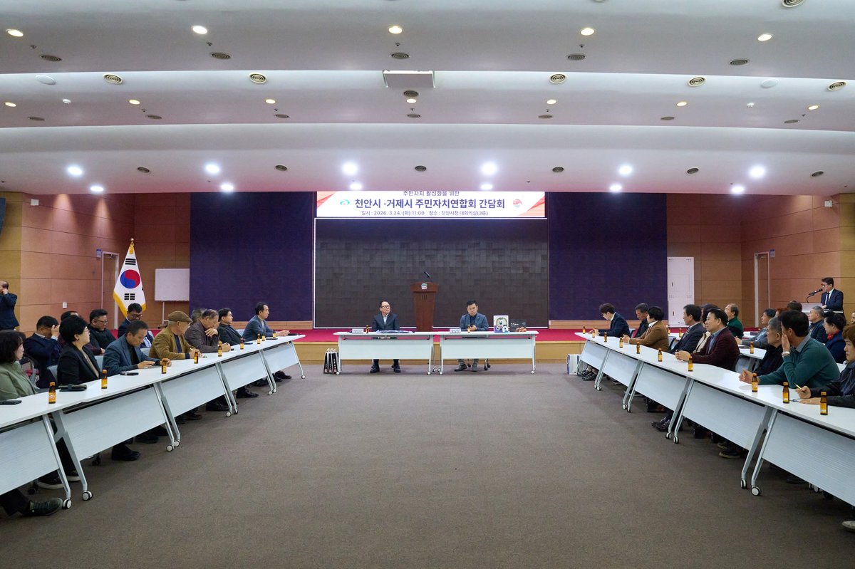 간담회에는 김석필 천안시장 권한대행 부시장과 박정규 천안시 주민자치연합회장, 여철근 거제시 주민자치연합회장 등 양 도시 관계자들이 참석했다.