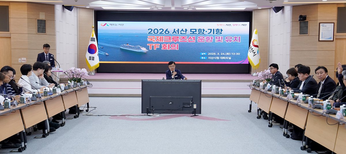 [충청25시] 충남 서산시는 24일 시청 대회의실에서 2026 서산 모항 기항 국제 크루즈선 운항 및 유치 TF 회의를 개최했다고 밝혔다.