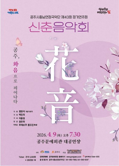 입장권은 전석 5000원이며 공주시문예회관 누리집과 NOL인터파크 누리집에서 예매할 수 있다.