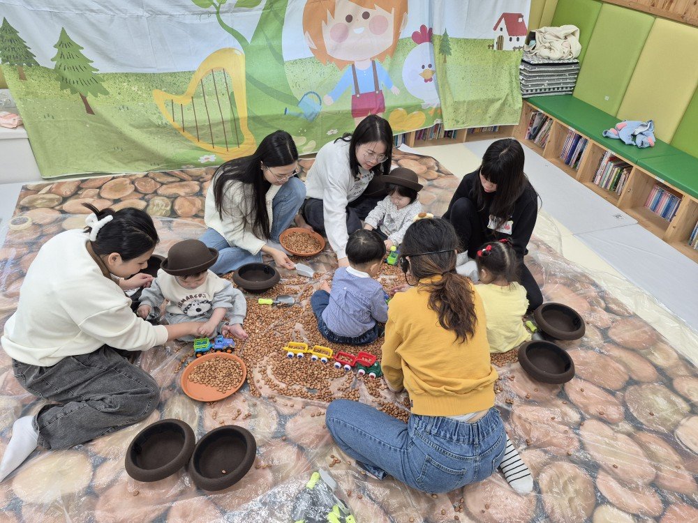 첫 회기는 ‘잭과 콩나물의 요술씨앗’을 주제로 진행됐으며 참여 아동들은 씨앗의 성장 과정을 놀이로 배우고 콩을 활용한 촉감놀이에 참여하며 부모와 자녀가 함께 교감하는 시간을 가졌다.