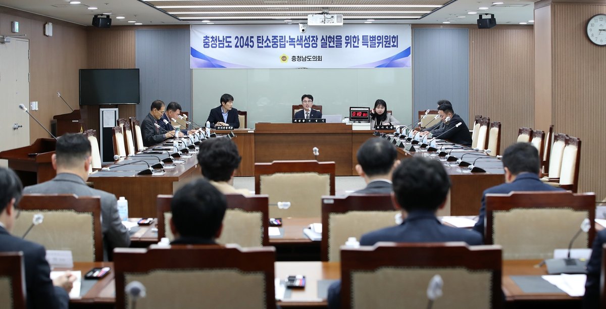 [충청25시] 충남도의회 '충청남도 2045 탄소중립 녹색성장 실현을 위한 특별위원회'는 27일 3차 회의를 개최하고 충남도가 추진 중인 탄소중립 이행 상황 점검 결과와 향후 개선 방안을 집중적으로 논의했다.