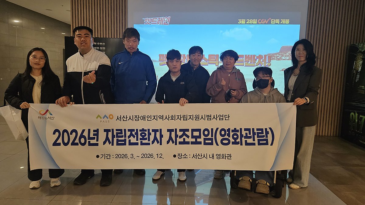 [충청25시] 서산시는 장애인이 지역에서 자립할 수 있도록 주거지원과 일상생활 지원 등을 포함한 '장애인지역사회자립지원시범사업'을 추진하고 있으며 장애인지역사회자립지원시범사업단은 3월 28일 서산시 CGV에서 자립전환자 대상으로 1분기 자조모임을 개최했다.