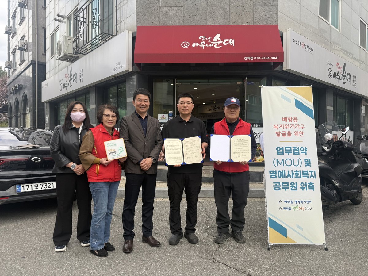 옛날아우내순대는 매월 정기후원을 통해 배방 지역의 어려운 이웃을 지원해 왔으며 이번 협약을 통해 위기가구를 발굴하고 배방읍 찾아가는 보건복지팀과 연계한 모니터 활동에도 협력하기로 했다.