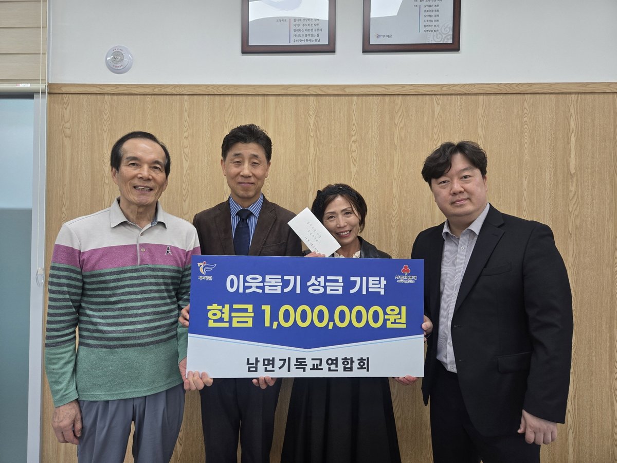 남면기독교연합회는 지난 31일 남면행정복지센터를 방문해 헌금으로 모은 성금 100만원을 기탁했다.