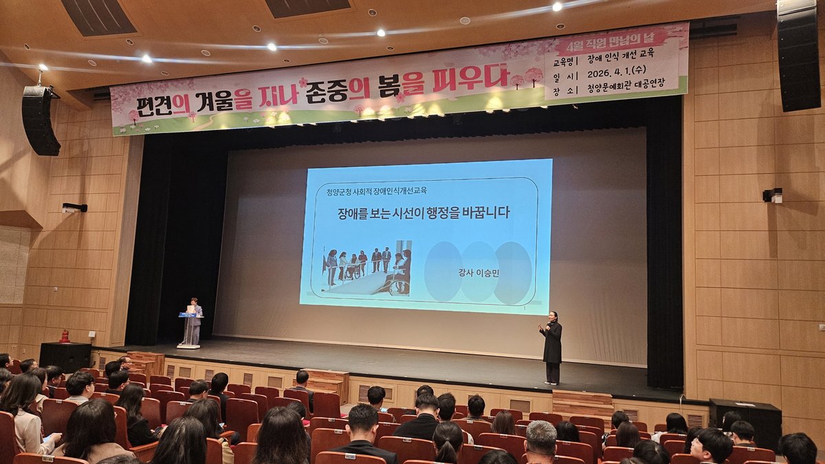 군은 지난 1일 청양군 문예회관 대공연장에서 소속 직원 300여명이 참석한 가운데 ‘2026년 사회적 장애인식개선 교육’을 실시했다고 밝혔다.