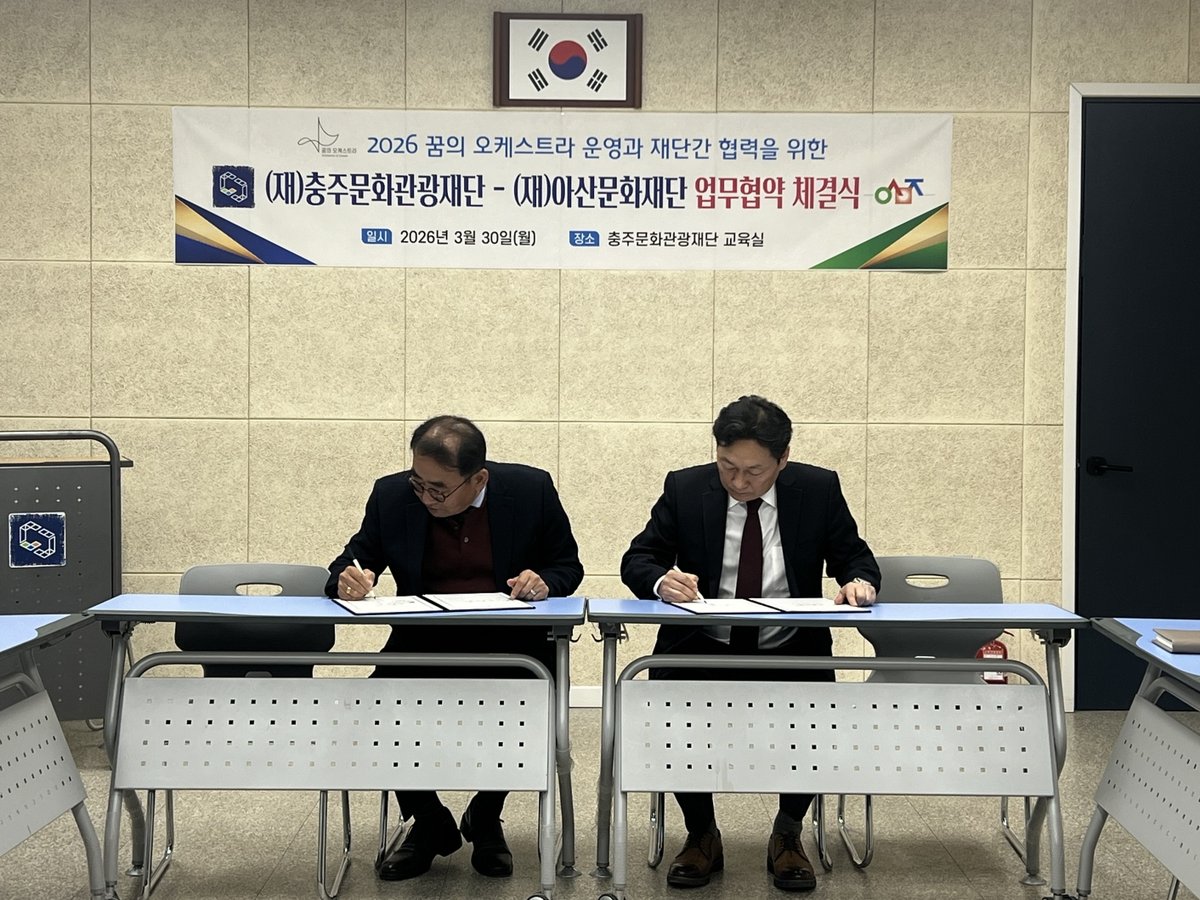더불어 꿈의 오케스트라 자립거점 기획사업 ‘교류 캠프’를 2026. 8월 아산에서 공동 추진해, 아산 충주 오케스트라 단원들간의 음악적 소양 교류와 함께 각 오케스트라 음악감독과 강사들과의 새로운 만남을 통해 다양한 경험을 제공하는 자리로 마련하고자 한다고 밝혔다.