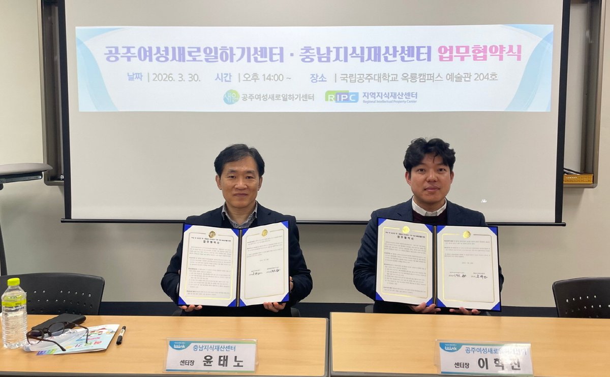 이혁진 공주여성새로일하기센터 센터장은 “이번 협약은 여성의 취업을 넘어 창업과 지식재산 역량까지 확대하는 중요한 계기가 될 것”이라며 “앞으로도 지역 내 유관 기관과의 협력을 통해 여성의 경제활동 참여 기반을 지속적으로 넓혀 나가겠다”고 말했다.