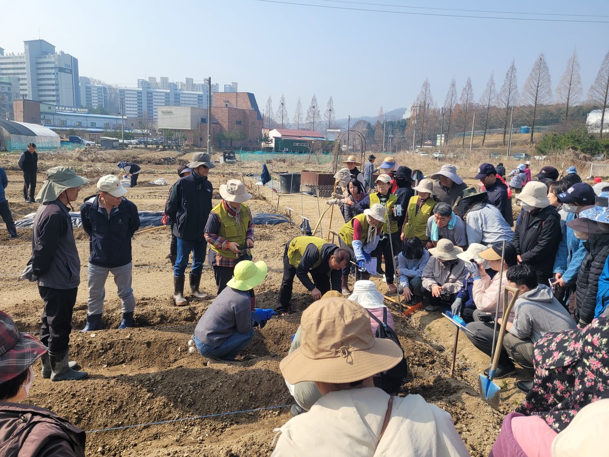 센터는 올해 선발된 교육생 100명과 함께 개별 텃밭에 씨앗과 모종이 잘 자랄 수 있도록 이랑을 조성하는 두둑을 만들고 지온 유지를 위한 멀칭 비닐을 씌운 후 감자와 완두 심기를 실습했다.