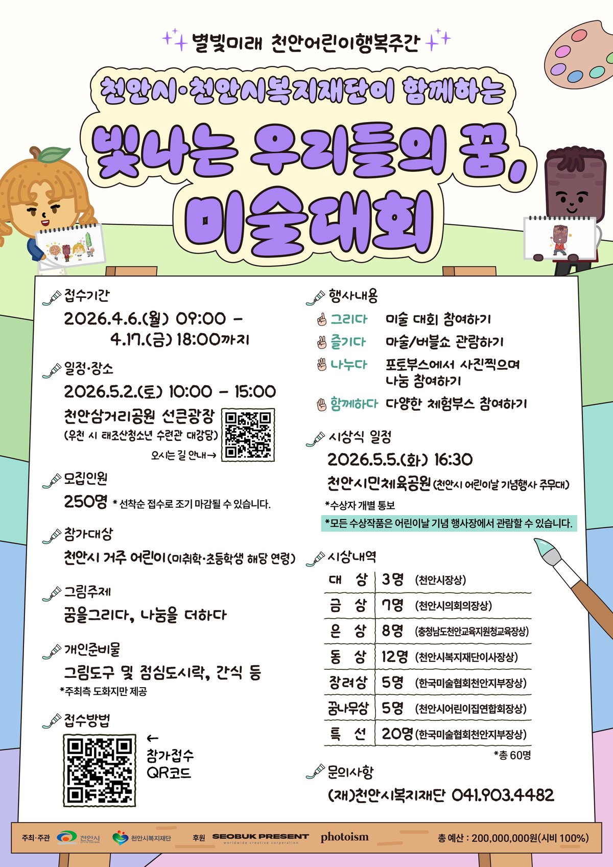 특히 ‘빛나는 우리들의 꿈 미술대회’는 천안시복지재단과 협력해 2일 삼거리공원에서 열리며 다양한 공연과 부대행사가 진행되는 복합문화 행사로 확대 운영될 예정이다.