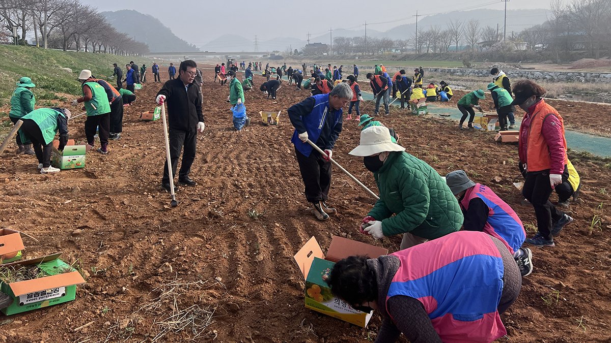 [충청25시] 충남 서산시 운산면은 4월 3일 운산면 관내 16개 기관 단체 회원 200여명이 참여한 가운데 용장천변 일대에 억새를 식재했다고 밝혔다.