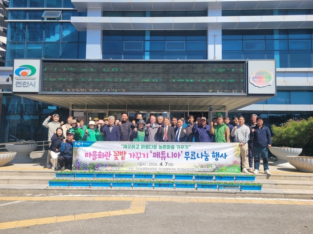 [충청25시] 천안시 직산읍은 직산농협이 주민들에게 페튜니아 화분을 전달했다고 8일 밝혔다.