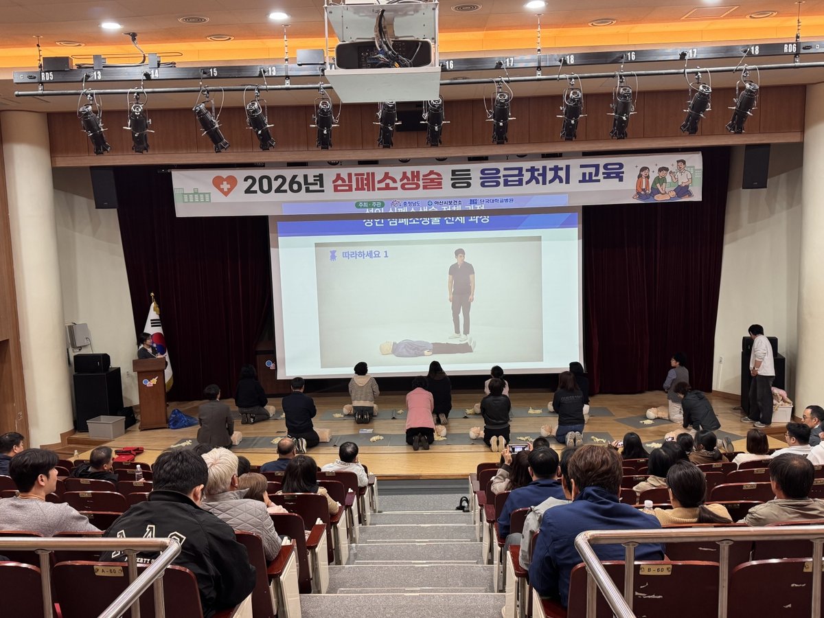 [충청25시] 아산시는 지난 7일과 8일 양일간 아산시 청소년교육문화센터에서 시민들의 응급상황 대응능력 향상과 심정지 환자의 생존율을 높이기 위한 2026년 심폐소생술 등 응급처치 교육을 실시했다.