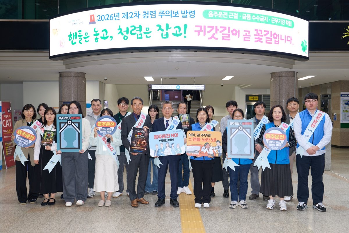 김범수 아산시 부시장은 “음주운전은 개인의 일탈을 넘어 공직사회 전체의 신뢰를 저해하는 중대한 비위 행위”며 “앞으로도 지속적인 교육과 캠페인을 통해 공직기강을 확립하고 청렴한 공직문화를 정착시키는 데 최선을 다하겠다”고 말했다.