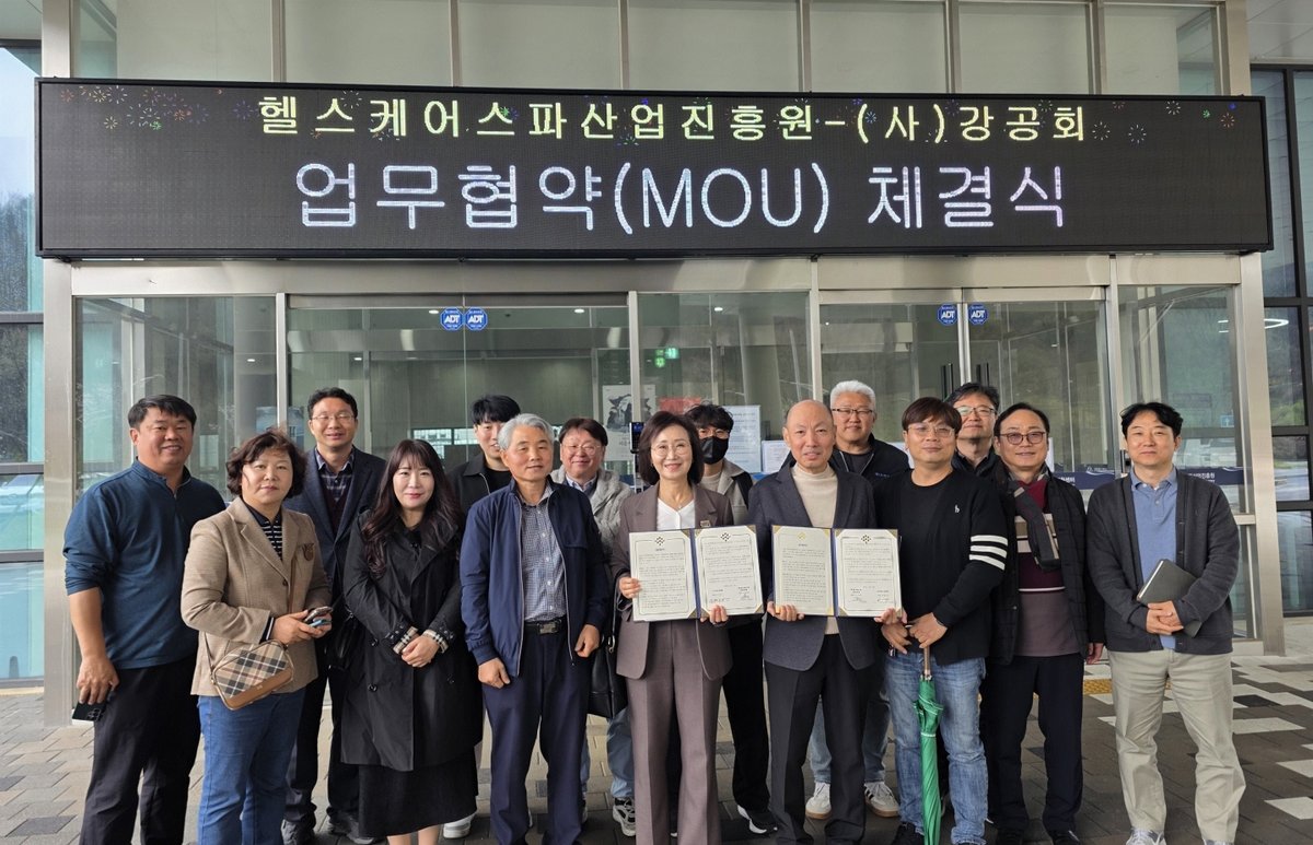 [충청25시] 헬스케어스파산업진흥원은 10일 (사)충남 강공회와 지역 산업 경쟁력 강화와 기업 중심 협력체계 구축을 위한 업무협약을 체결했다고 밝혔다.
