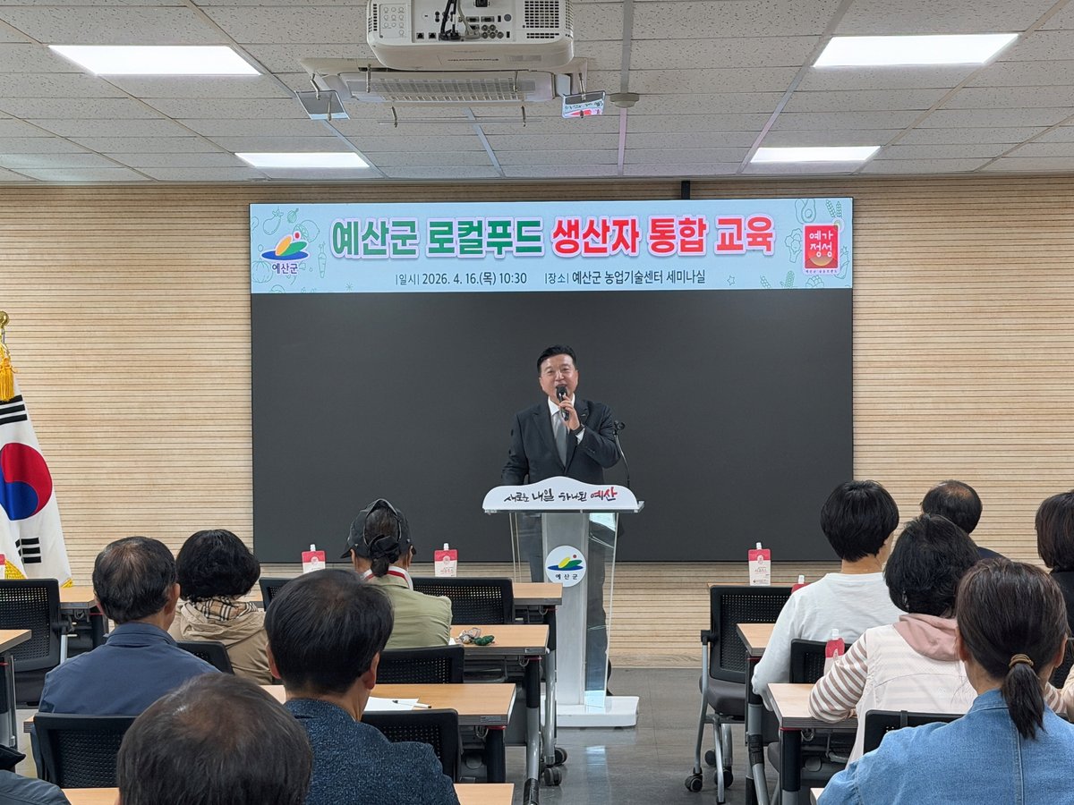 [충청25시] 예산군은 지난 16일 농업기술센터 세미나실에서 로컬푸드 직매장 출하 농가 80여명을 대상으로 2026년 로컬푸드 생산자 2분기 통합 교육을 실시했다.
