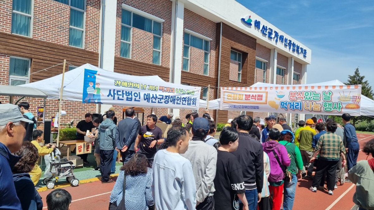 [충청25시] 예산군장애인연합회는 지난 16일 예산군 장애인종합복지관 운동장에서 2026년 장애인의 날 기념 먹거리 나눔 행사를 개최했다.