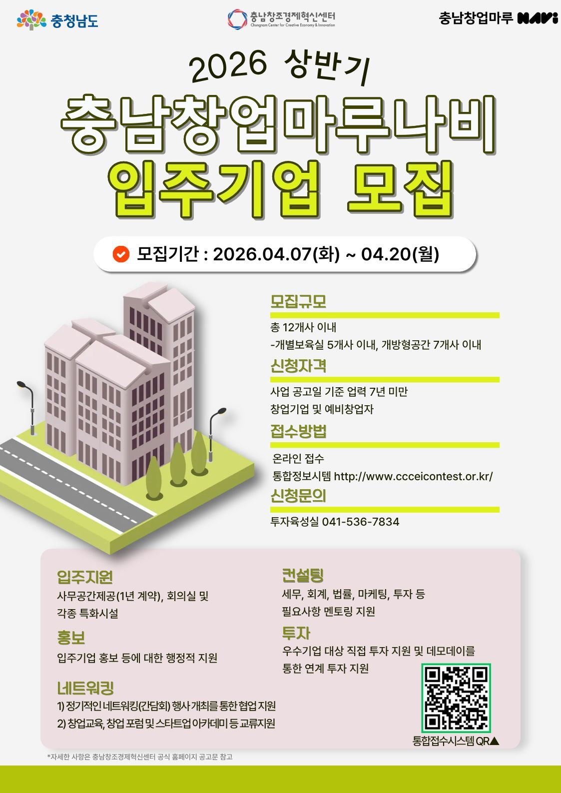 [충청25시] 충남창조경제혁신센터는 이달 20일까지 2026년 충남창업마루나비 입주기업을 모집한다고 밝혔다.