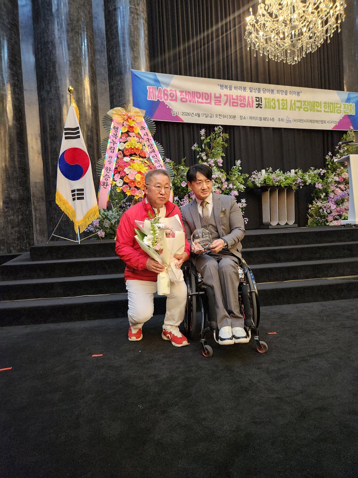 [충청25시] 이한영 대전시의원이 제46회 장애인의 날 기념행사에서 장애인 권익 증진과 복지 향상에 기여한 공로를 인정받아 감사패를 수상했다.