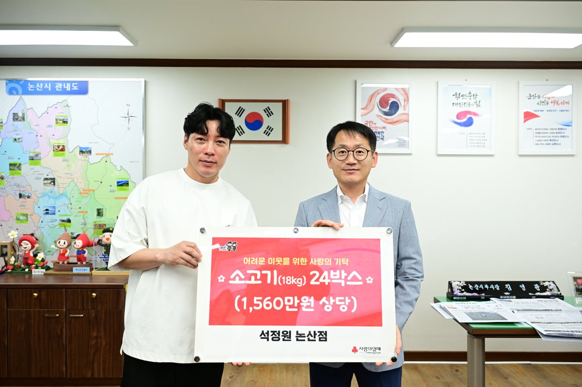 석정원 논산점 김신혁 대표는 “지역사회에 따뜻한 손길이 필요한 곳에 조금이나마 힘이 되길 바라는 마음으로 꾸준히 나눔을 실천하고 있다”며 “앞으로도 어려운 이웃을 위한 나눔 활동을 이어 가겠다”고 밝혔다.