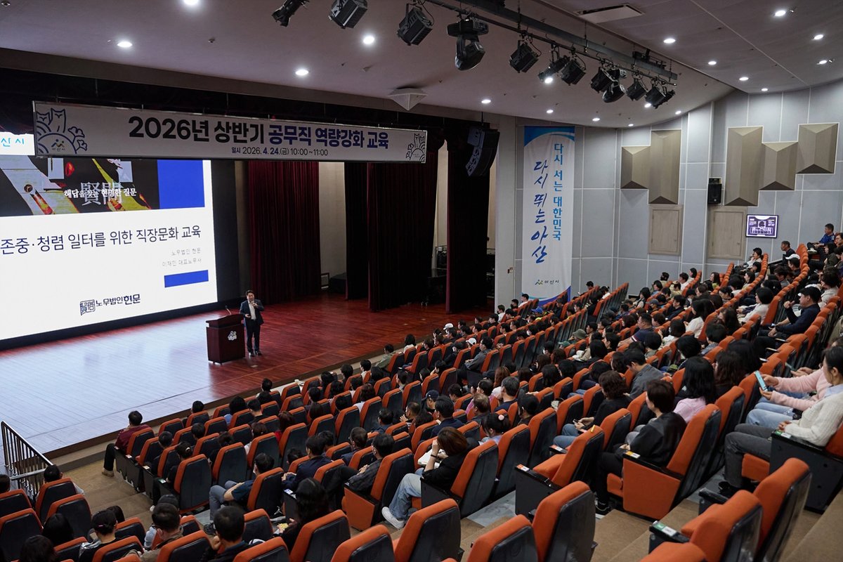 [충청25시] 아산시는 지난 24일 아산시청 시민홀에서 공무직 근로자 등을 대상으로 ‘2026년 상반기 공무직 역량강화교육’을 실시했다.