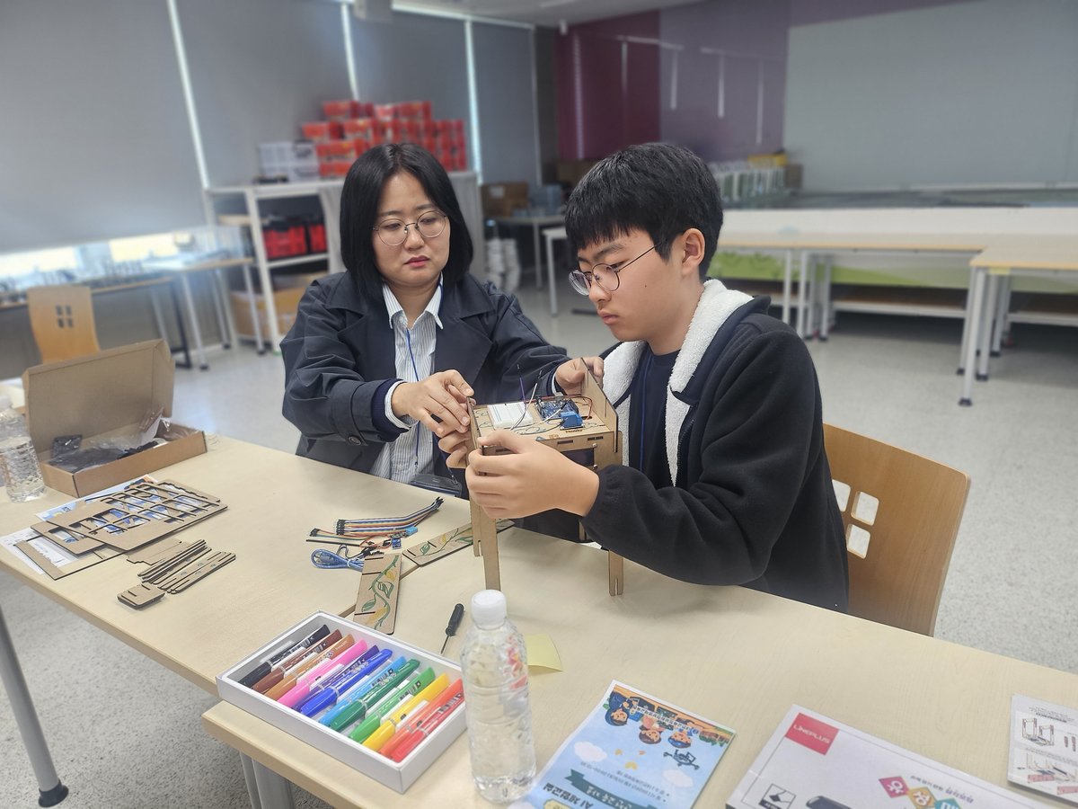 중등 과정인 ‘스마트 가든 랩’에서는 센서를 활용해 온도와 습도를 조절하고 작물 생장을 관리하며 미래 농업 기술을 직접 체험할 수 있도록 했다.