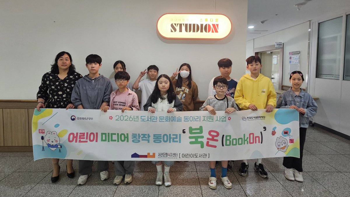 [충청25시] 서산문화복지센터 어린이도서관은 문화체육관광부가 주최하는 ‘2026년 도서관 문화예술 동아리 활동 지원 사업’에 선정, 작년에 이어 어린이 미디어 창작동아리 ‘BookOn'운영을 시작했다고 밝혔다.