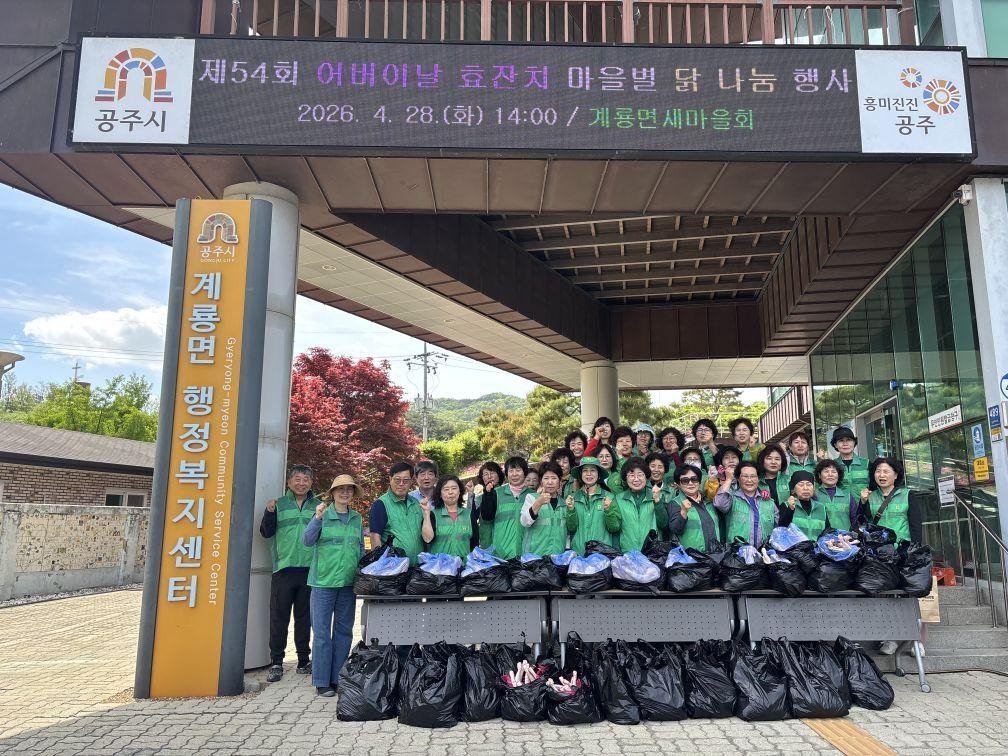 [충청25시] 공주시 계룡면은 지난 28일 다가오는 어버이날을 맞아 지역 어르신들을 위한 나눔 행사인 ‘닭 나눔 경로잔치’를 개최했다고 밝혔다.