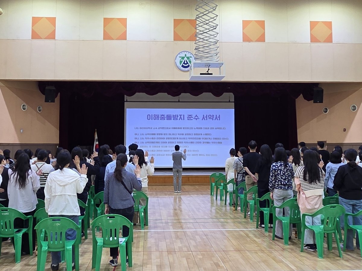 [충청25시] 아산성심학교는 지난 4월 27일 교직원 소통의 장인 ‘교직원 다모임의 날’을 맞아 전 구성원이 참여하는 ‘이해충돌방지 서약식’을 실시했다.