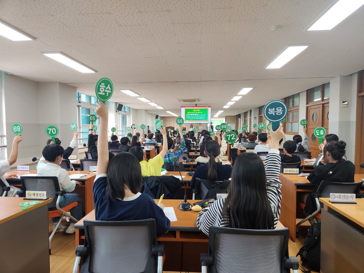 회의 직후에는 학생이 주체가 되는 학교 문화 조성을 위해 대전시선거관리위원회 민주 시민 교육 전문 강사를 초빙해 ‘학생 중심 학교 문화 조성을 위한 자치 역량 강화 교육’특강을 진행했다.