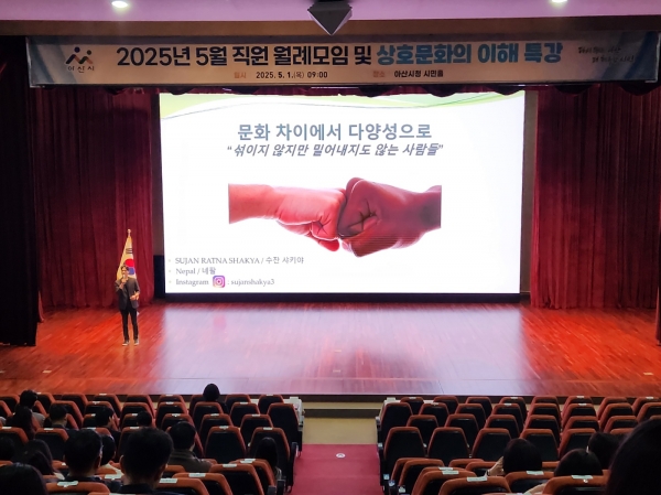 이번 특강은 지속적으로 증가하는 아산시 외국인 주민과 다문화 사회의 확산에 따라 공직자들의 상호문화 이해 역량을 높이고 차별 없이 함께 어우러져 살아가는 도시를 만들기 위해 마련됐다.