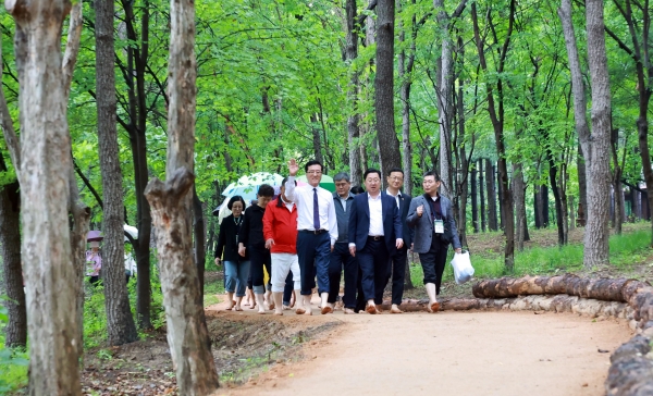 [충청25시] 대전시의회 조원휘 의장은 15일 한밭수목원 맨발걷기 산책로 개장식에 참석해 개장을 위해 노력하신 관계자들을 격려하고 앞으로 시민들에게 치유와 건강의 공간이 될 맨발걷기 산책로의 개장을 축하했다.