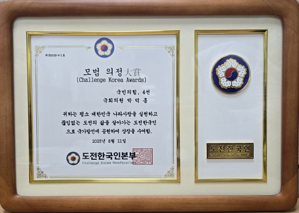 [충청25시] 박덕흠 국회의원 이 11 일 , 서울시가 후원하고 서울시의회와 도전한국인본부가 주최한 ‘2025 도전페스티벌 ’ 에서 모범 의정대상을 수상했다.