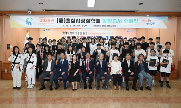 [충청25시] 홍성사랑장학회는 지난 26일 오후 3시, 홍성군청 대강당에서 ‘2025년 홍성사랑장학회 장학증서 수여식’을 개최했다.