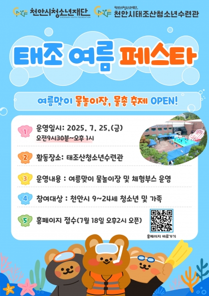 [충청25시] 천안시청소년재단 천안시태조산청소년수련관이 오는 25일 수련관에서 ‘태조 여름 페스타’를 운영한다.