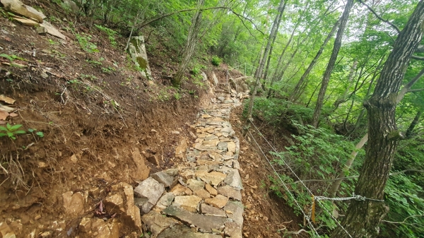군은 이번 정비를 통해 노면 정비를 비롯해 등산로 방향안내판, 안전로프난간, 돌계단 설치 등에 나서 길을 잃는 사고가 없는 안전한 산행환경을 조성했다.