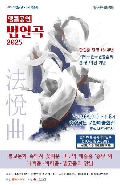 한편 ‘법열곡 2025’는 이애주문화재단이 주최하고 이애주한국전통춤회가 주관하며 동서식품이 후원하고 사랑의 열매가 지원한다.