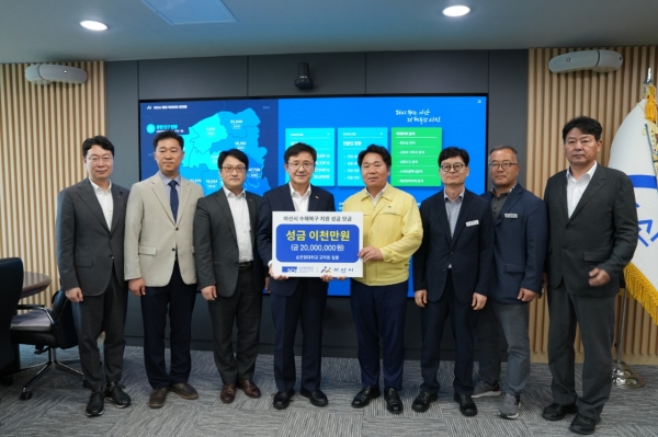 [충청25시] 아산시가 23일 순천향대학교로부터 최근 집중호우에 따른 수해복구를 돕기 위한 성금 2,000만원을 전달받았다고 밝혔다.