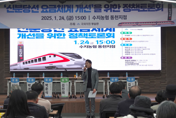 또, 부 의원은 올해 1월 24일 ‘신분당선 요금체계 개선을 위한 정책토론회’를 용인시 수지농협동천지점에서 개최했다.