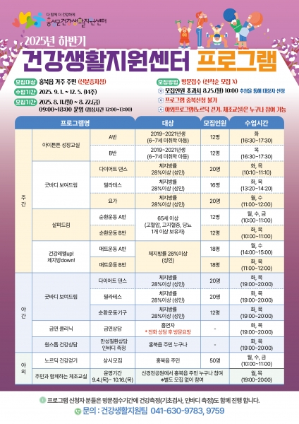 [충청25시] 홍성군 건강생활지원센터는 홍북읍 주민의 건강 증진을 위해 오는 22일까지 ‘하반기 신체활동 프로그램’ 참여자를 모집한다고 밝혔다.