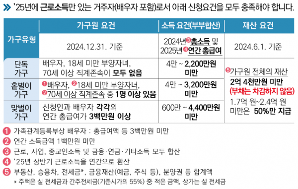 ’ 25년도 상반기에 근로소득만 있는 134만 가구가 신청대상이며신청한 장려금은 요건 심사 후 12월 말에 지급할 예정이다.
