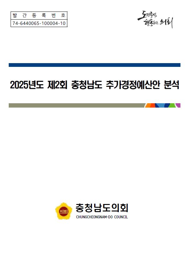 [충청25시] 충남도의회는 충남도 제2회 추가경정예산안 및 제1회 기금운용계획변경안 심의를 지원하기 위해 ‘2025년도 제2회 충청남도 추가경정예산안 분석보고서’를 발간했다.