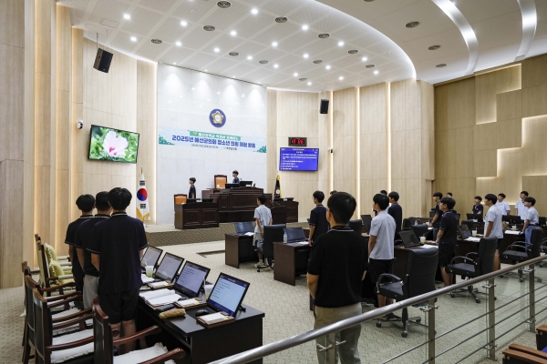 참가 학생들은 본회의장에서 실제 회의처럼 안건 제안과 표결 과정을 직접 경험하며 지방의회의 기능과 역할을 쉽게 이해할 수 있다.