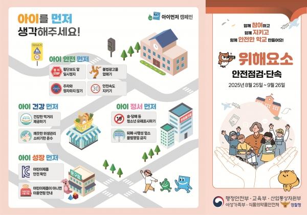 또한, 점검과 함께 군청 누리집, SNS, 현수막 등을 통한 홍보를 추진하고 민간단체와 함께하는 “아이 먼저 캠페인”을 전개해 어린이 안전 문화 확산에도 힘쓸 계획이다.