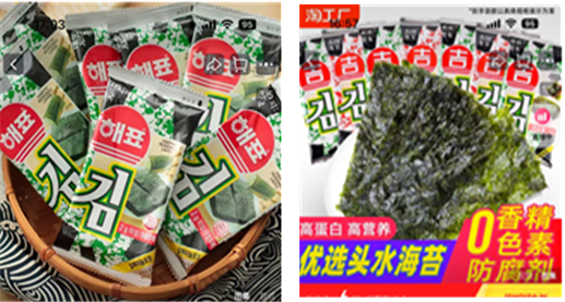 김 등 케이-씨푸드에 대한 전 세계적인 한류 인기에 편승해 중국·동남아 등 해외에서 저가·저품질의 조미김·어묵 등 위조식품 유통·판매가 빈번하게 이루어졌다.