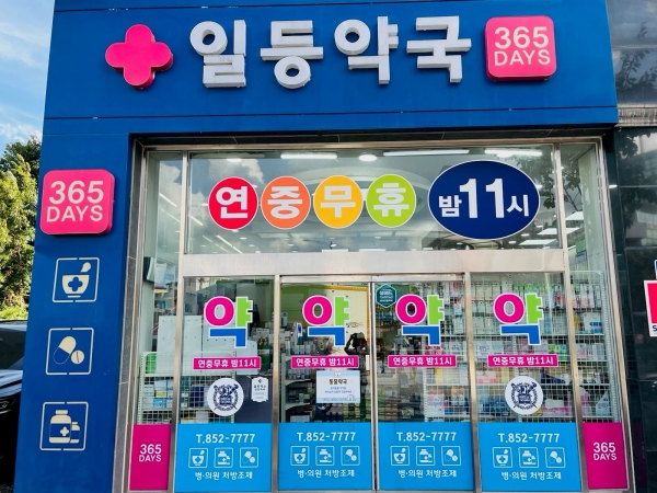 일등약국은 공공심야약국 운영시간인 오후 10시부터 익일 새벽 1시까지를 포함해 매일 오전 8시 30분부터 익일 새벽 1시까지 장시간 운영된다.