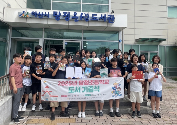 특히 이번 기증식에는 고영이 아산시 시립도서관장과 김용희 탕정초 교감이 함께해 학생들의 따뜻한 마음을 격려하며 나눔의 가치를 되새겼다.