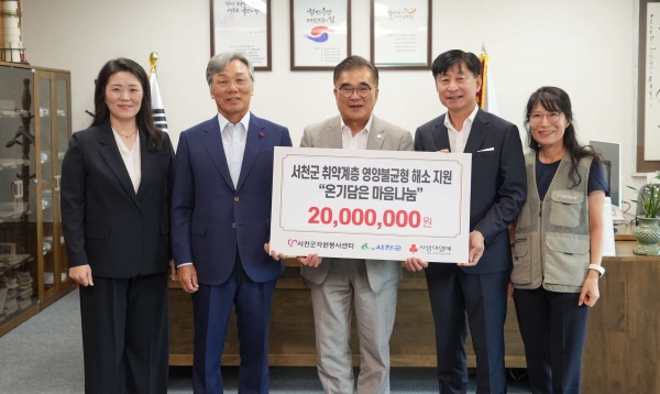 [충청25시] 서천군은 지난 5일 군수집무실에서 충남사회복지공동모금회 연중캠페인 최우수 시군 선정에 따라 기획사업비 2천만원을 배분받아 전달식을 진행했다.