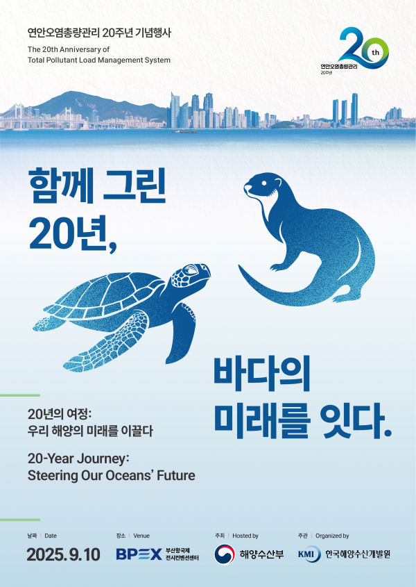 [충청25시] 해양수산부는 9월 10일 부산항국제전시컨벤션센터에서 ‘연안오염총량관리제 도입 20주년 기념행사’를 개최한다고 밝혔다.