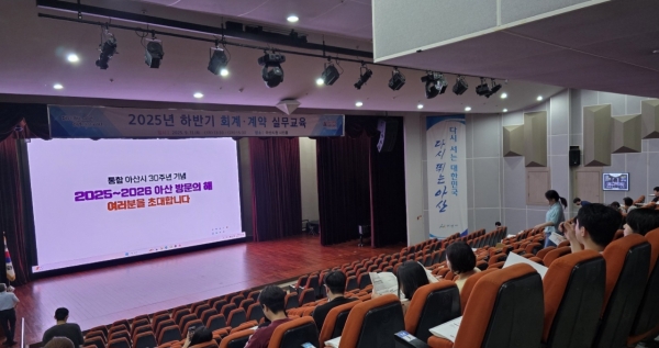 [충청25시] 아산시는 11일 시청 시민홀에서 전 부서와 산하기관 직원 300여명이 참석한 가운데 ‘2025년 하반기 회계·계약 실무교육’을 실시했다고 밝혔다.